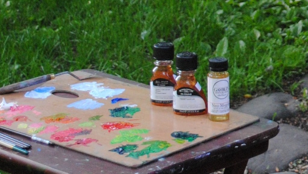 One afternoon in June I tested out three different alkyd mediums, painting three separate pictures of plants in my back yard