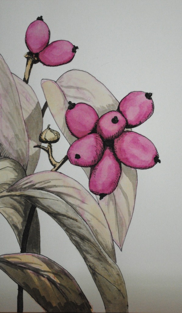 Dogwood Berries Two – 10×8 – ink, natural dyes on paper (Apr 2013)