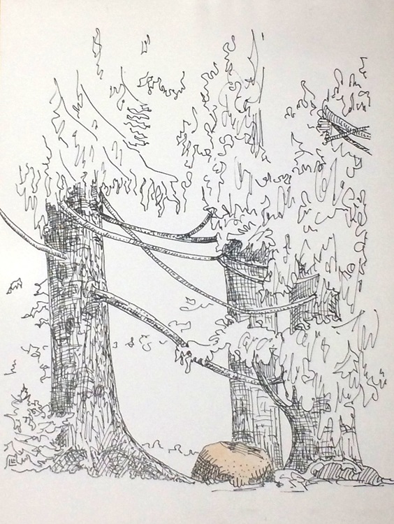 Hidden Woods – 14×11 – ink & pastel on paper (Catskills, near Onteora Lake Dec 2015)