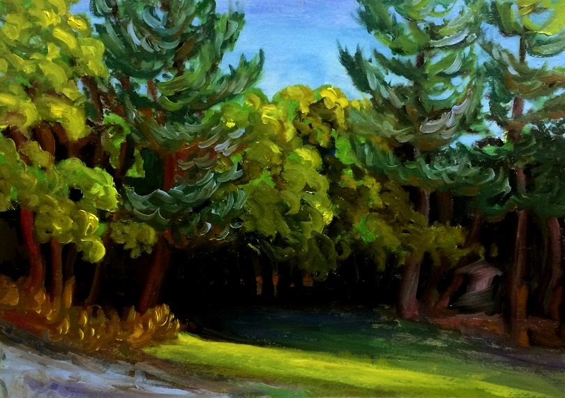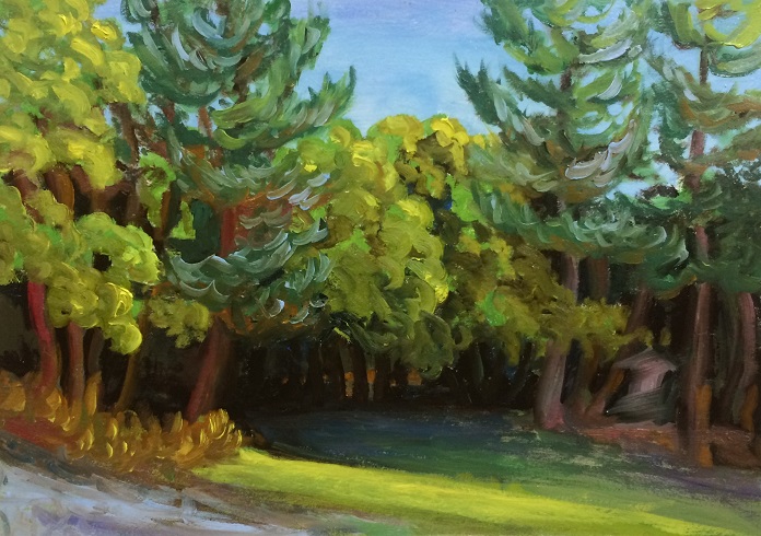 Looking downhill at Woodstock Artists’ Cemetery – oil on paper – 14 x 11 in (Sept 2018)