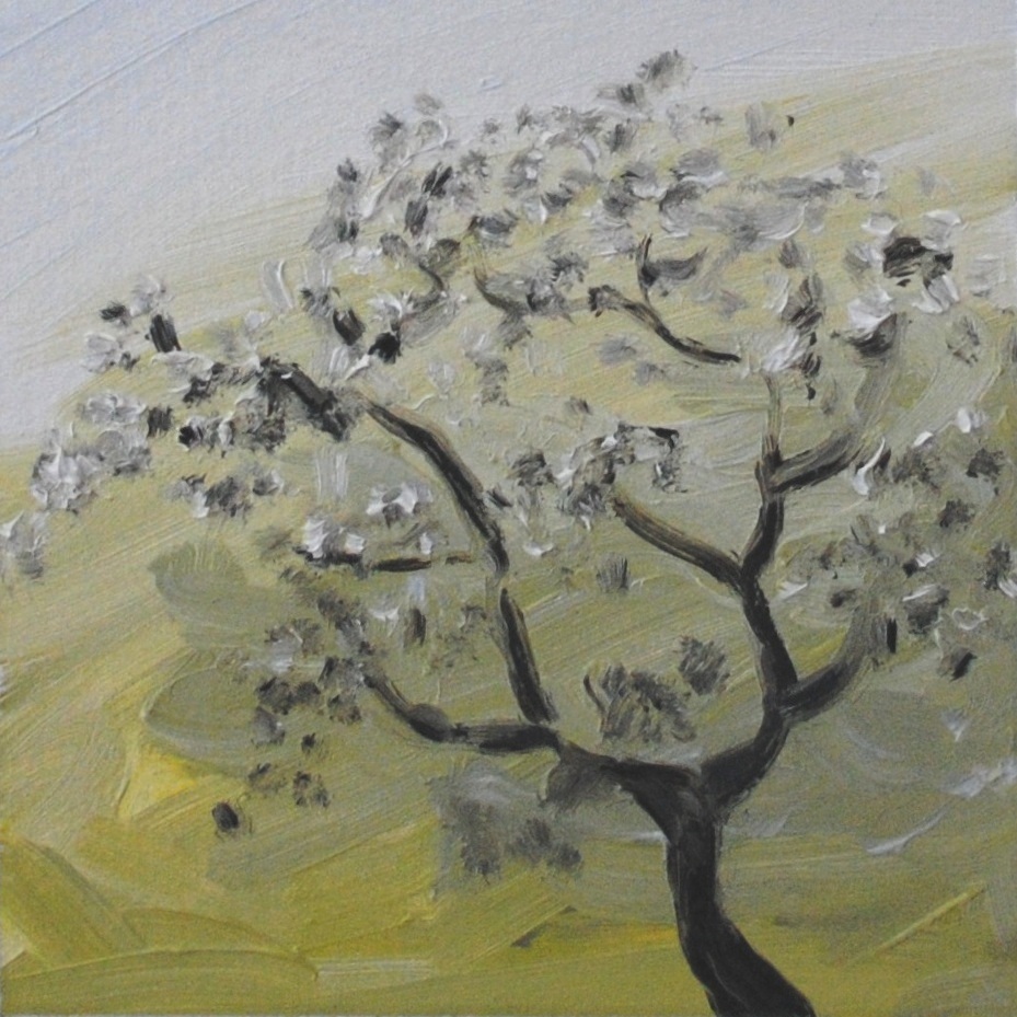 Sunrise and first snow 1 – 5×5 in. – oil on paper (Jan 3, 2019)
