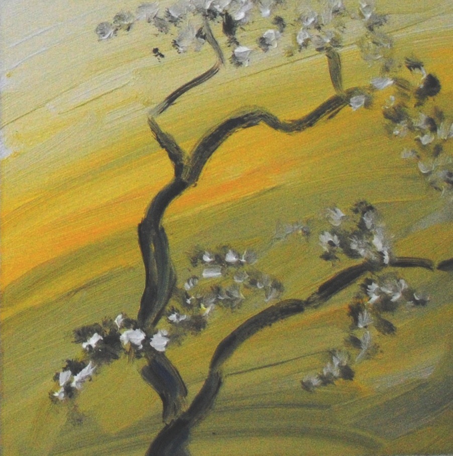 Sunrise at first snow 2 – 5×5 in. – oil on paper (Jan 3, 2019)