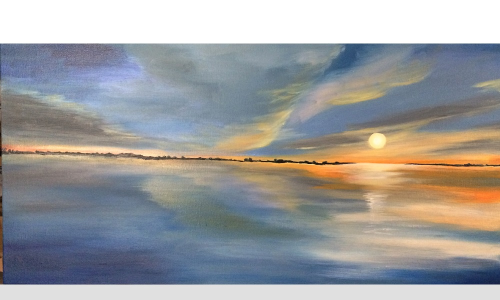 Noank Sunrise – 15 x 30 in – oil on canvas (Mar 2017)